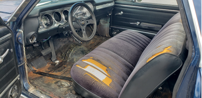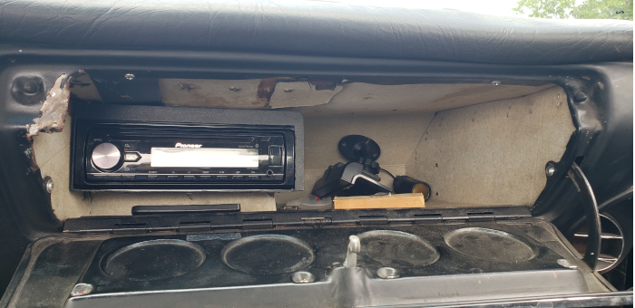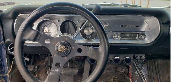 Seriously considering going with Classic Instruments gauges so I can get rid of the ones installed under the dash. And you can bet your last dollar that Grant GT wheel is coming out soon! And yes, this is a factory A/C car... but you'll notice there's no vent above the radio. Apparently the system wasn't working, so they gutted it. Vintage Air is going in it, using the factory controls and vents.