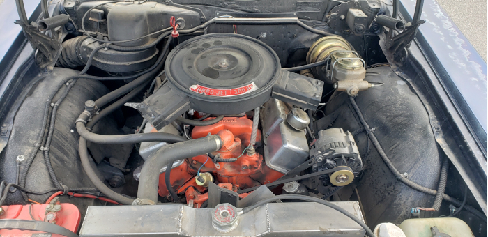 Ahhhh! The L74 300hp 327ci V8! While this is not the original engine, it is a remanufactured, year correct engine. The PowerGlide 2 speed auto was swapped out for a TH350 3 speed. While it would have been nice to have it original, that TH does make highway cruising better!