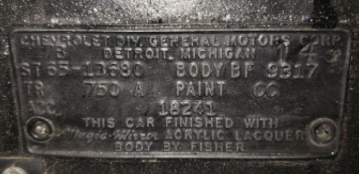 The cowl tag (aka trim, body or Fisher tag) shows this car's originally build options.